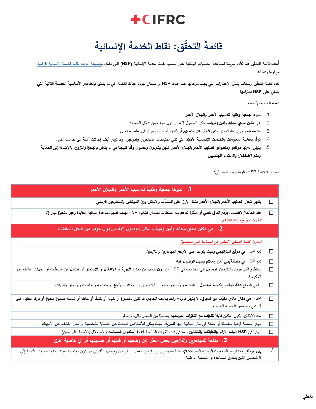 تم إعداد هذه القائمة كأداة سريعة لدعم الجمعيات الوطنية في تصميم وبناء وتنفيذ نقاط الخدمة الإنسانية (HSP)، كمكمل…